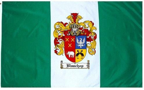 Bisschop Family Crest Flag / Coat of Arms Flag. You will receive a high quality 3' x 5' Polyester flag with two brass grommets. Proudly display your family heritage with this flag, or hang as a banner on a wall. Our flags make great gifts for birthdays, weddings, anniversaries, fathers day, mothers day, groomsmen gifts, and any other occasion