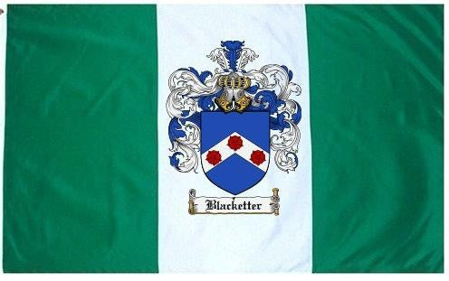 Blacketter Family Crest Flag / Coat of Arms Flag. You will receive a high quality 3' x 5' Polyester flag with two brass grommets. Proudly display your family heritage with this flag, or hang as a banner on a wall. Our flags make great gifts for birthdays, weddings, anniversaries, fathers day, mothers day, groomsmen gifts, and any other occasion