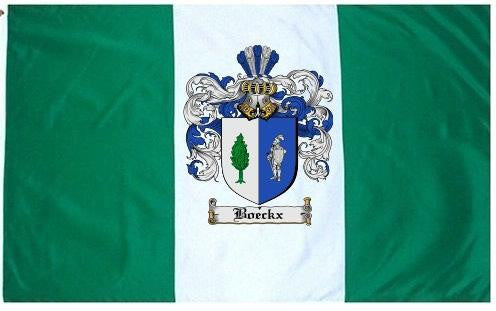 Boeckx Family Crest Flag / Coat of Arms Flag. You will receive a high quality 3' x 5' Polyester flag with two brass grommets. Proudly display your family heritage with this flag, or hang as a banner on a wall. Our flags make great gifts for birthdays, weddings, anniversaries, fathers day, mothers day, groomsmen gifts, and any other occasion