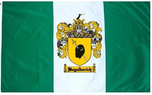 Bogatkevich Family Crest Flag / Coat of Arms Flag. You will receive a high quality 3' x 5' Polyester flag with two brass grommets. Proudly display your family heritage with this flag, or hang as a banner on a wall. Our flags make great gifts for birthdays, weddings, anniversaries, fathers day, mothers day, groomsmen gifts, and any other occasion