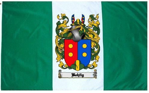 Bohlig Family Crest Flag / Coat of Arms Flag. You will receive a high quality 3' x 5' Polyester flag with two brass grommets. Proudly display your family heritage with this flag, or hang as a banner on a wall. Our flags make great gifts for birthdays, weddings, anniversaries, fathers day, mothers day, groomsmen gifts, and any other occasion