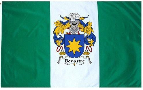 Bonastre Family Crest Flag / Coat of Arms Flag. You will receive a high quality 3' x 5' Polyester flag with two brass grommets. Proudly display your family heritage with this flag, or hang as a banner on a wall. Our flags make great gifts for birthdays, weddings, anniversaries, fathers day, mothers day, groomsmen gifts, and any other occasion