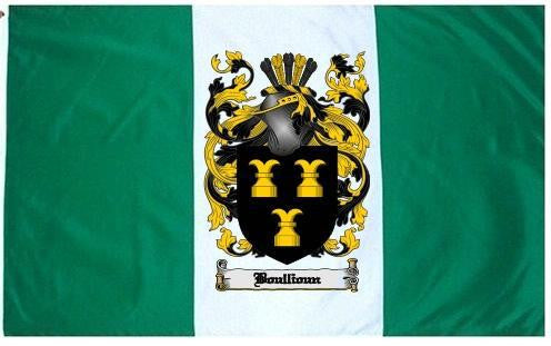Boullioun Family Crest Flag / Coat of Arms Flag. You will receive a high quality 3' x 5' Polyester flag with two brass grommets. Proudly display your family heritage with this flag, or hang as a banner on a wall. Our flags make great gifts for birthdays, weddings, anniversaries, fathers day, mothers day, groomsmen gifts, and any other occasion
