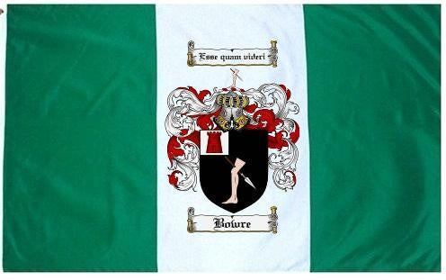 Bowre Family Crest Flag / Coat of Arms Flag. You will receive a high quality 3' x 5' Polyester flag with two brass grommets. Proudly display your family heritage with this flag, or hang as a banner on a wall. Our flags make great gifts for birthdays, weddings, anniversaries, fathers day, mothers day, groomsmen gifts, and any other occasion
