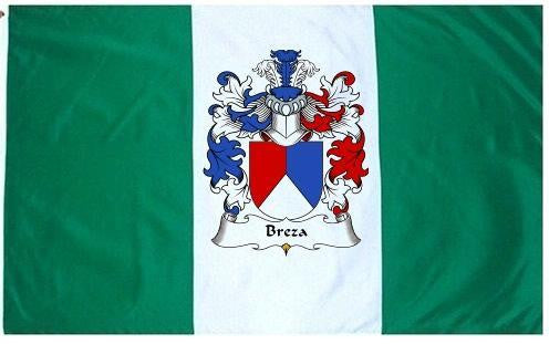 Breza Family Crest Flag / Coat of Arms Flag. You will receive a high quality 3' x 5' Polyester flag with two brass grommets. Proudly display your family heritage with this flag, or hang as a banner on a wall. Our flags make great gifts for birthdays, weddings, anniversaries, fathers day, mothers day, groomsmen gifts, and any other occasion