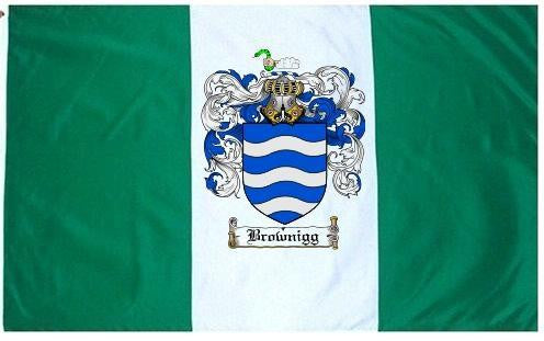 Brownigg Family Crest Flag / Coat of Arms Flag. You will receive a high quality 3' x 5' Polyester flag with two brass grommets. Proudly display your family heritage with this flag, or hang as a banner on a wall. Our flags make great gifts for birthdays, weddings, anniversaries, fathers day, mothers day, groomsmen gifts, and any other occasion