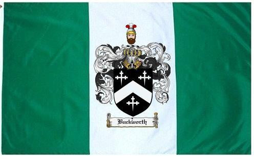 Buckworth Family Crest Flag / Coat of Arms Flag. You will receive a high quality 3' x 5' Polyester flag with two brass grommets. Proudly display your family heritage with this flag, or hang as a banner on a wall. Our flags make great gifts for birthdays, weddings, anniversaries, fathers day, mothers day, groomsmen gifts, and any other occasion