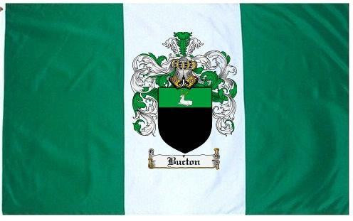 Bucton Family Crest Flag / Coat of Arms Flag. You will receive a high quality 3' x 5' Polyester flag with two brass grommets. Proudly display your family heritage with this flag, or hang as a banner on a wall. Our flags make great gifts for birthdays, weddings, anniversaries, fathers day, mothers day, groomsmen gifts, and any other occasion
