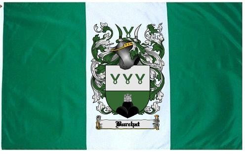 Burchat Family Crest Flag / Coat of Arms Flag. You will receive a high quality 3' x 5' Polyester flag with two brass grommets. Proudly display your family heritage with this flag, or hang as a banner on a wall. Our flags make great gifts for birthdays, weddings, anniversaries, fathers day, mothers day, groomsmen gifts, and any other occasion