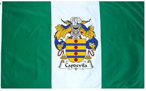 Capdevila Family Crest Flag / Coat of Arms Flag. You will receive a high quality 3' x 5' Polyester flag with two brass grommets. Proudly display your family heritage with this flag, or hang as a banner on a wall. Our flags make great gifts for birthdays, weddings, anniversaries, fathers day, mothers day, groomsmen gifts, and any other occasion