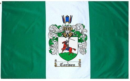 Carlsen Family Crest Flag / Coat of Arms Flag. You will receive a high quality 3' x 5' Polyester flag with two brass grommets. Proudly display your family heritage with this flag, or hang as a banner on a wall. Our flags make great gifts for birthdays, weddings, anniversaries, fathers day, mothers day, groomsmen gifts, and any other occasion