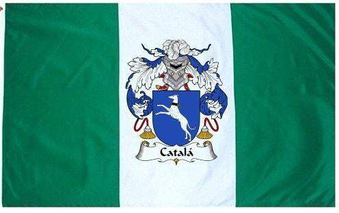 Catala Family Crest Flag / Coat of Arms Flag. You will receive a high quality 3' x 5' Polyester flag with two brass grommets. Proudly display your family heritage with this flag, or hang as a banner on a wall. Our flags make great gifts for birthdays, weddings, anniversaries, fathers day, mothers day, groomsmen gifts, and any other occasion