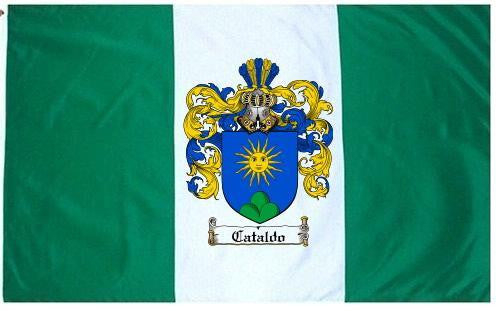 Cataldo Family Crest Flag / Coat of Arms Flag. You will receive a high quality 3' x 5' Polyester flag with two brass grommets. Proudly display your family heritage with this flag, or hang as a banner on a wall. Our flags make great gifts for birthdays, weddings, anniversaries, fathers day, mothers day, groomsmen gifts, and any other occasion