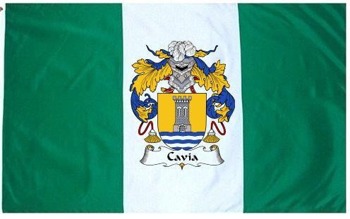 Cavia Family Crest Flag / Coat of Arms Flag. You will receive a high quality 3' x 5' Polyester flag with two brass grommets. Proudly display your family heritage with this flag, or hang as a banner on a wall. Our flags make great gifts for birthdays, weddings, anniversaries, fathers day, mothers day, groomsmen gifts, and any other occasion