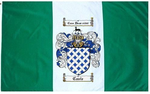 Cavie Family Crest Flag / Coat of Arms Flag. You will receive a high quality 3' x 5' Polyester flag with two brass grommets. Proudly display your family heritage with this flag, or hang as a banner on a wall. Our flags make great gifts for birthdays, weddings, anniversaries, fathers day, mothers day, groomsmen gifts, and any other occasion