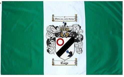 Caye Family Crest Flag / Coat of Arms Flag. You will receive a high quality 3' x 5' Polyester flag with two brass grommets. Proudly display your family heritage with this flag, or hang as a banner on a wall. Our flags make great gifts for birthdays, weddings, anniversaries, fathers day, mothers day, groomsmen gifts, and any other occasion