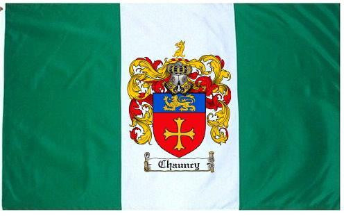 Chauncy Family Crest Flag / Coat of Arms Flag. You will receive a high quality 3' x 5' Polyester flag with two brass grommets. Proudly display your family heritage with this flag, or hang as a banner on a wall. Our flags make great gifts for birthdays, weddings, anniversaries, fathers day, mothers day, groomsmen gifts, and any other occasion