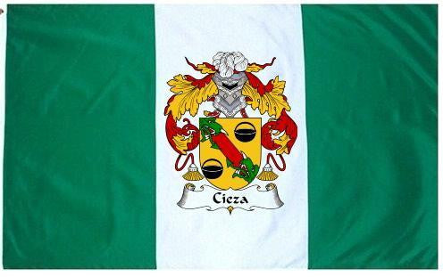 Cieza Family Crest Flag / Coat of Arms Flag. You will receive a high quality 3' x 5' Polyester flag with two brass grommets. Proudly display your family heritage with this flag, or hang as a banner on a wall. Our flags make great gifts for birthdays, weddings, anniversaries, fathers day, mothers day, groomsmen gifts, and any other occasion