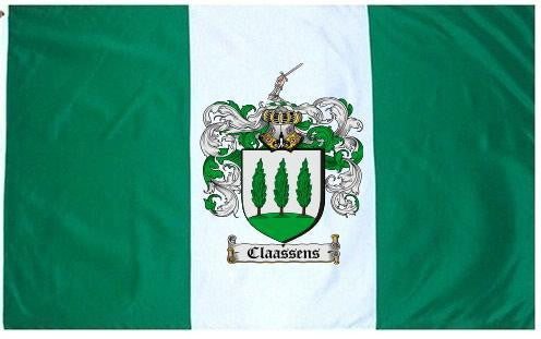 Claassens Family Crest Flag / Coat of Arms Flag. You will receive a high quality 3' x 5' Polyester flag with two brass grommets. Proudly display your family heritage with this flag, or hang as a banner on a wall. Our flags make great gifts for birthdays, weddings, anniversaries, fathers day, mothers day, groomsmen gifts, and any other occasion
