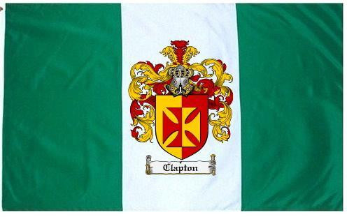 Clapton Family Crest Flag / Coat of Arms Flag. You will receive a high quality 3' x 5' Polyester flag with two brass grommets. Proudly display your family heritage with this flag, or hang as a banner on a wall. Our flags make great gifts for birthdays, weddings, anniversaries, fathers day, mothers day, groomsmen gifts, and any other occasion