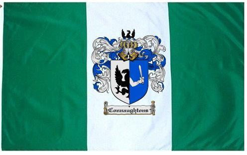 Connaughtons Family Crest Flag / Coat of Arms Flag. You will receive a high quality 3' x 5' Polyester flag with two brass grommets. Proudly display your family heritage with this flag, or hang as a banner on a wall. Our flags make great gifts for birthdays, weddings, anniversaries, fathers day, mothers day, groomsmen gifts, and any other occasion