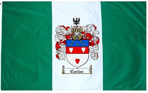 Corleo Family Crest Flag / Coat of Arms Flag. You will receive a high quality 3' x 5' Polyester flag with two brass grommets. Proudly display your family heritage with this flag, or hang as a banner on a wall. Our flags make great gifts for birthdays, weddings, anniversaries, fathers day, mothers day, groomsmen gifts, and any other occasion
