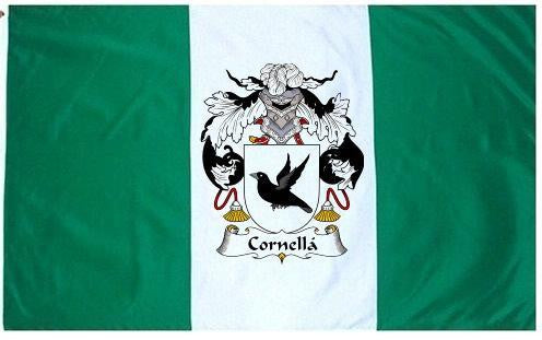 Cornella Family Crest Flag / Coat of Arms Flag. You will receive a high quality 3' x 5' Polyester flag with two brass grommets. Proudly display your family heritage with this flag, or hang as a banner on a wall. Our flags make great gifts for birthdays, weddings, anniversaries, fathers day, mothers day, groomsmen gifts, and any other occasion