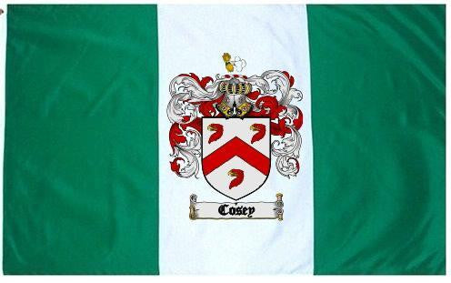 Cosey Family Crest Flag / Coat of Arms Flag. You will receive a high quality 3' x 5' Polyester flag with two brass grommets. Proudly display your family heritage with this flag, or hang as a banner on a wall. Our flags make great gifts for birthdays, weddings, anniversaries, fathers day, mothers day, groomsmen gifts, and any other occasion