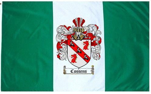 Cossens Family Crest Flag / Coat of Arms Flag. You will receive a high quality 3' x 5' Polyester flag with two brass grommets. Proudly display your family heritage with this flag, or hang as a banner on a wall. Our flags make great gifts for birthdays, weddings, anniversaries, fathers day, mothers day, groomsmen gifts, and any other occasion