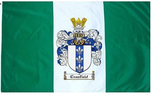 Cranfield Family Crest Flag / Coat of Arms Flag. You will receive a high quality 3' x 5' Polyester flag with two brass grommets. Proudly display your family heritage with this flag, or hang as a banner on a wall. Our flags make great gifts for birthdays, weddings, anniversaries, fathers day, mothers day, groomsmen gifts, and any other occasion