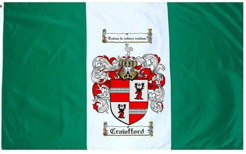 Crawfford Family Crest Flag / Coat of Arms Flag. You will receive a high quality 3' x 5' Polyester flag with two brass grommets. Proudly display your family heritage with this flag, or hang as a banner on a wall. Our flags make great gifts for birthdays, weddings, anniversaries, fathers day, mothers day, groomsmen gifts, and any other occasion