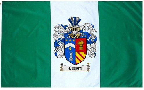 Cuadra Family Crest Flag / Coat of Arms Flag. You will receive a high quality 3' x 5' Polyester flag with two brass grommets. Proudly display your family heritage with this flag, or hang as a banner on a wall. Our flags make great gifts for birthdays, weddings, anniversaries, fathers day, mothers day, groomsmen gifts, and any other occasion
