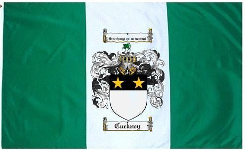 Cuckney Family Crest Flag / Coat of Arms Flag. You will receive a high quality 3' x 5' Polyester flag with two brass grommets. Proudly display your family heritage with this flag, or hang as a banner on a wall. Our flags make great gifts for birthdays, weddings, anniversaries, fathers day, mothers day, groomsmen gifts, and any other occasion