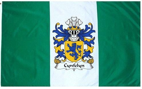Cynfelyn Family Crest Flag / Coat of Arms Flag. You will receive a high quality 3' x 5' Polyester flag with two brass grommets. Proudly display your family heritage with this flag, or hang as a banner on a wall. Our flags make great gifts for birthdays, weddings, anniversaries, fathers day, mothers day, groomsmen gifts, and any other occasion