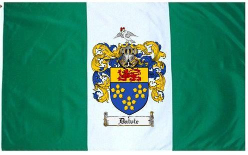 Daivie Family Crest Flag / Coat of Arms Flag. You will receive a high quality 3' x 5' Polyester flag with two brass grommets. Proudly display your family heritage with this flag, or hang as a banner on a wall. Our flags make great gifts for birthdays, weddings, anniversaries, fathers day, mothers day, groomsmen gifts, and any other occasion