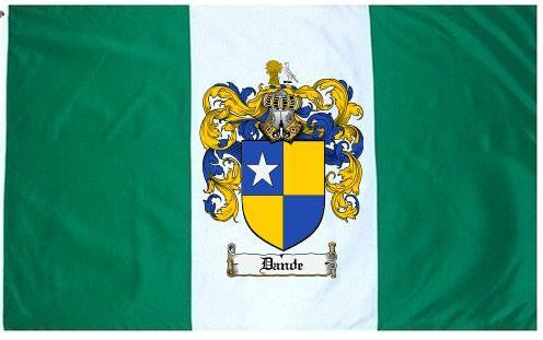 Dande Family Crest Flag / Coat of Arms Flag. You will receive a high quality 3' x 5' Polyester flag with two brass grommets. Proudly display your family heritage with this flag, or hang as a banner on a wall. Our flags make great gifts for birthdays, weddings, anniversaries, fathers day, mothers day, groomsmen gifts, and any other occasion