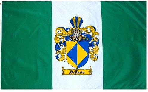 Defazio Family Crest Flag / Coat of Arms Flag. You will receive a high quality 3' x 5' Polyester flag with two brass grommets. Proudly display your family heritage with this flag, or hang as a banner on a wall. Our flags make great gifts for birthdays, weddings, anniversaries, fathers day, mothers day, groomsmen gifts, and any other occasion