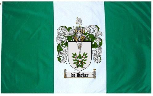 Dekoker Family Crest Flag / Coat of Arms Flag. You will receive a high quality 3' x 5' Polyester flag with two brass grommets. Proudly display your family heritage with this flag, or hang as a banner on a wall. Our flags make great gifts for birthdays, weddings, anniversaries, fathers day, mothers day, groomsmen gifts, and any other occasion