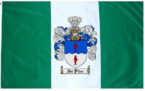 Delpilar Family Crest Flag / Coat of Arms Flag. You will receive a high quality 3' x 5' Polyester flag with two brass grommets. Proudly display your family heritage with this flag, or hang as a banner on a wall. Our flags make great gifts for birthdays, weddings, anniversaries, fathers day, mothers day, groomsmen gifts, and any other occasion