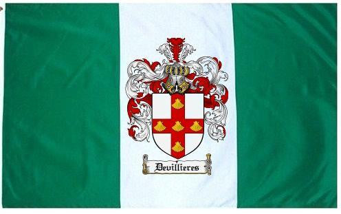 Devillieres Family Crest Flag / Coat of Arms Flag. You will receive a high quality 3' x 5' Polyester flag with two brass grommets. Proudly display your family heritage with this flag, or hang as a banner on a wall. Our flags make great gifts for birthdays, weddings, anniversaries, fathers day, mothers day, groomsmen gifts, and any other occasion