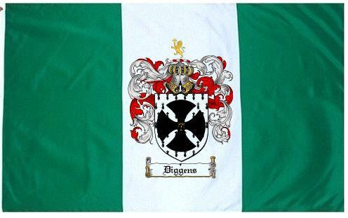 Diggens Family Crest Flag / Coat of Arms Flag. You will receive a high quality 3' x 5' Polyester flag with two brass grommets. Proudly display your family heritage with this flag, or hang as a banner on a wall. Our flags make great gifts for birthdays, weddings, anniversaries, fathers day, mothers day, groomsmen gifts, and any other occasion