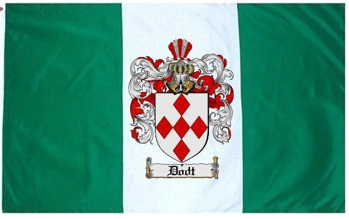 Dodt Family Crest Flag / Coat of Arms Flag. You will receive a high quality 3' x 5' Polyester flag with two brass grommets. Proudly display your family heritage with this flag, or hang as a banner on a wall. Our flags make great gifts for birthdays, weddings, anniversaries, fathers day, mothers day, groomsmen gifts, and any other occasion