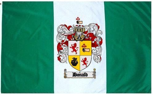Donald Family Crest Flag / Coat of Arms Flag. You will receive a high quality 3' x 5' Polyester flag with two brass grommets. Proudly display your family heritage with this flag, or hang as a banner on a wall. Our flags make great gifts for birthdays, weddings, anniversaries, fathers day, mothers day, groomsmen gifts, and any other occasion