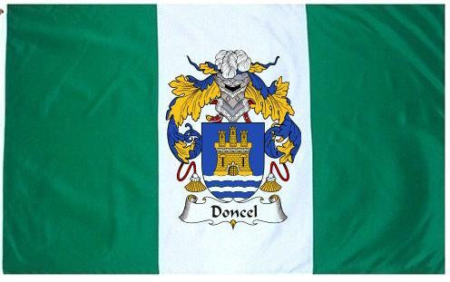 Doncel Family Crest Flag / Coat of Arms Flag. You will receive a high quality 3' x 5' Polyester flag with two brass grommets. Proudly display your family heritage with this flag, or hang as a banner on a wall. Our flags make great gifts for birthdays, weddings, anniversaries, fathers day, mothers day, groomsmen gifts, and any other occasion