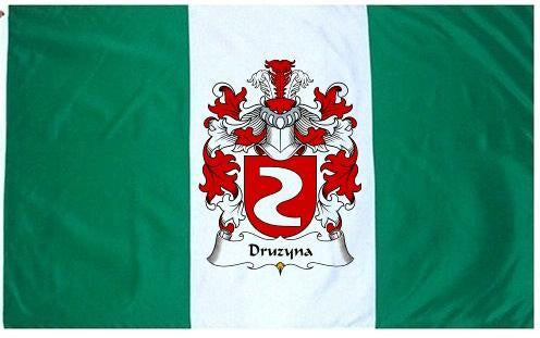 Druzyna Family Crest Flag / Coat of Arms Flag. You will receive a high quality 3' x 5' Polyester flag with two brass grommets. Proudly display your family heritage with this flag, or hang as a banner on a wall. Our flags make great gifts for birthdays, weddings, anniversaries, fathers day, mothers day, groomsmen gifts, and any other occasion