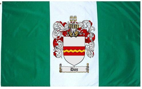 Duis Family Crest Flag / Coat of Arms Flag. You will receive a high quality 3' x 5' Polyester flag with two brass grommets. Proudly display your family heritage with this flag, or hang as a banner on a wall. Our flags make great gifts for birthdays, weddings, anniversaries, fathers day, mothers day, groomsmen gifts, and any other occasion