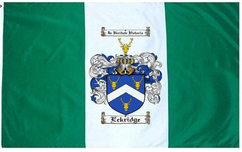 Eckridge Family Crest Flag / Coat of Arms Flag. You will receive a high quality 3' x 5' Polyester flag with two brass grommets. Proudly display your family heritage with this flag, or hang as a banner on a wall. Our flags make great gifts for birthdays, weddings, anniversaries, fathers day, mothers day, groomsmen gifts, and any other occasion