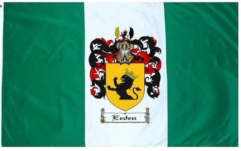 Eeden Family Crest Flag / Coat of Arms Flag. You will receive a high quality 3' x 5' Polyester flag with two brass grommets. Proudly display your family heritage with this flag, or hang as a banner on a wall. Our flags make great gifts for birthdays, weddings, anniversaries, fathers day, mothers day, groomsmen gifts, and any other occasion