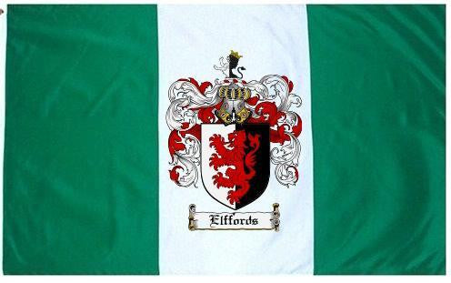 Elffords Family Crest Flag / Coat of Arms Flag. You will receive a high quality 3' x 5' Polyester flag with two brass grommets. Proudly display your family heritage with this flag, or hang as a banner on a wall. Our flags make great gifts for birthdays, weddings, anniversaries, fathers day, mothers day, groomsmen gifts, and any other occasion