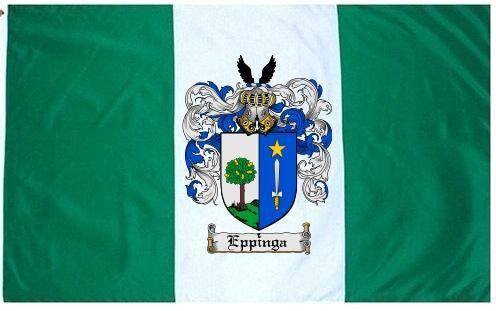 Eppinga Family Crest Flag / Coat of Arms Flag. You will receive a high quality 3' x 5' Polyester flag with two brass grommets. Proudly display your family heritage with this flag, or hang as a banner on a wall. Our flags make great gifts for birthdays, weddings, anniversaries, fathers day, mothers day, groomsmen gifts, and any other occasion
